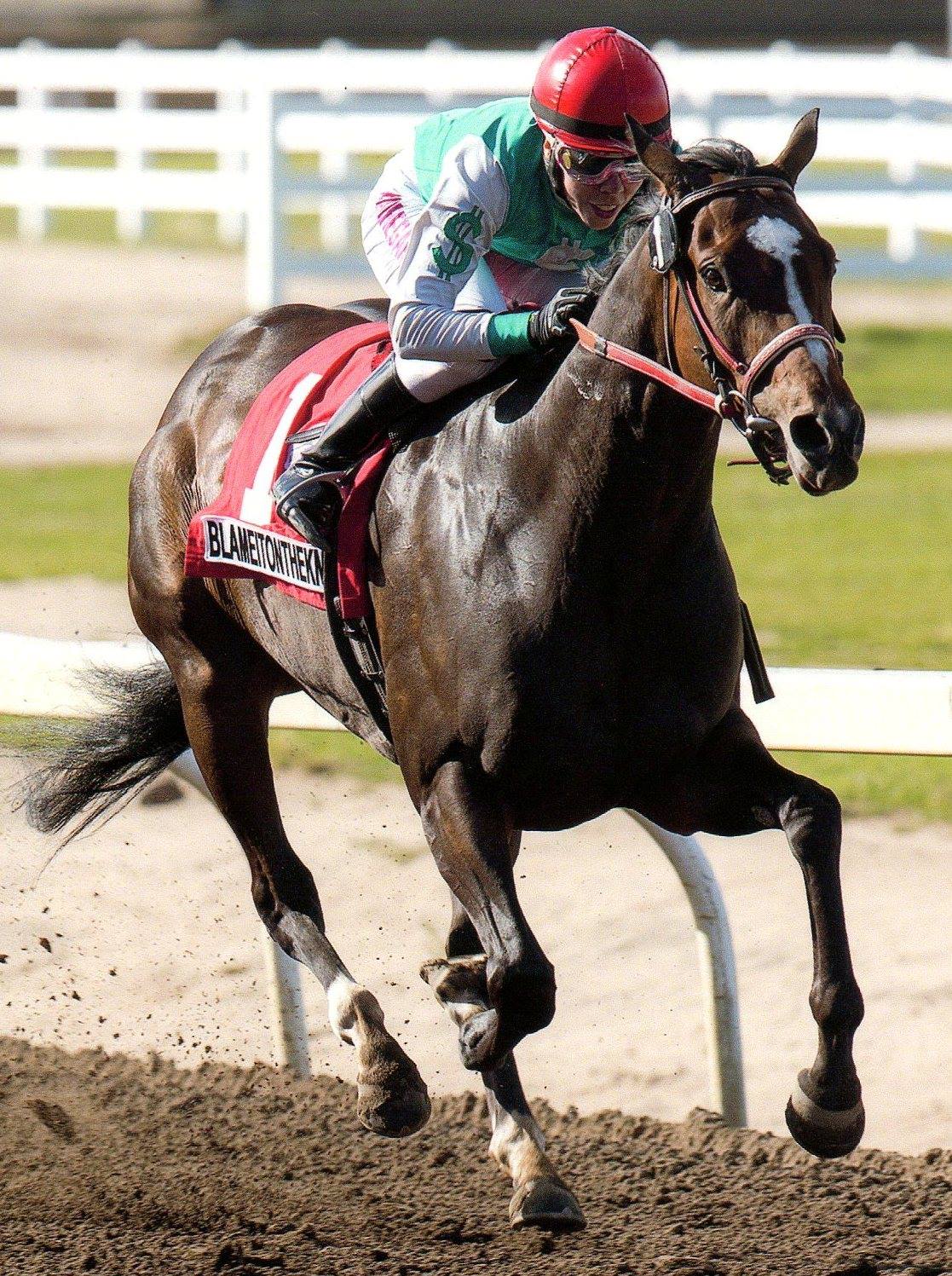 BLAMEITONTHEKNIGHT was a clear winner in the battle for the Fall Classic Distaff title. The defeat established a third career stakes win for this 2015 Champion Claimer bred by Don Gibb and increased her lifetime earnings to $149,547. Blameitontheknight by Sharp Humor out of Miss Jennifer Lynn was purchased at the 2013 CTHS Alberta Sale and is owned by M & P Equipment Inc., Met Set Consulting Ltd. and Dale Saunders. Sharp Humor is a sire of 10 black type winners and progeny earnings of over $10 Million and Miss Jennifer Lynn by El Prado ($97,252) has produced 4 winners in addition to Blameitontheknight.