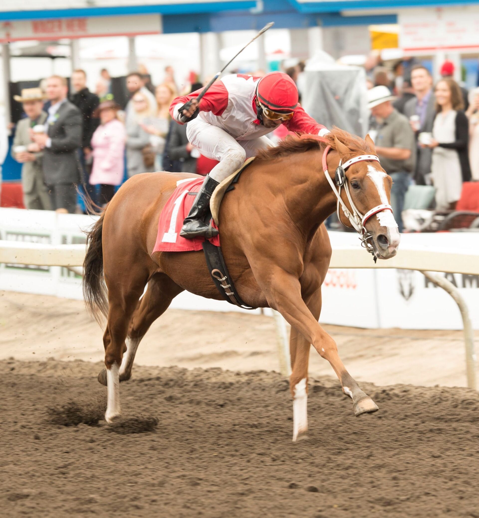XTREME DENIGRAY captured the Red Diamond Express sponsored by Red Diamond Stable for three year olds and up. This 2012 Sale graduate and gelding Rosetti gelding bred by Calmar Stables and Ranch brought his career earnings to $107,758 with this win for owner Ted Graling. Rosetti has sired 7 stakes winners and progeny with earnings of over $2.3 Million. Successful Alberta multiple stakes winner, Classa Red Wine ($123,880), is the dam of Xtreme Denigray. The four year old runner is now a multiple stakes winner having also captured the Alberta Derby title last season.