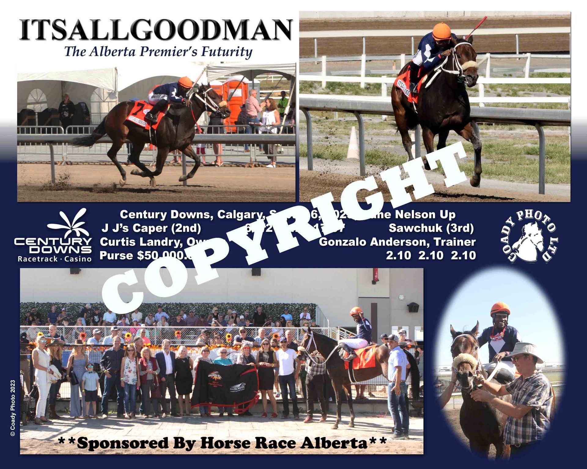 CTHS Alberta sale graduate, ITSALLGOODMAN, was the winner of the Alberta Premier’s Futurity for two year olds. The Speightster gelding was bred by Stone Ranches and is owned by Curtis Landry. Itsallgoodman was most recently second in the Canadian Juvenile black type stakes before this win and now has over US $48,000 in earnings with a record of 4-2-1-1.