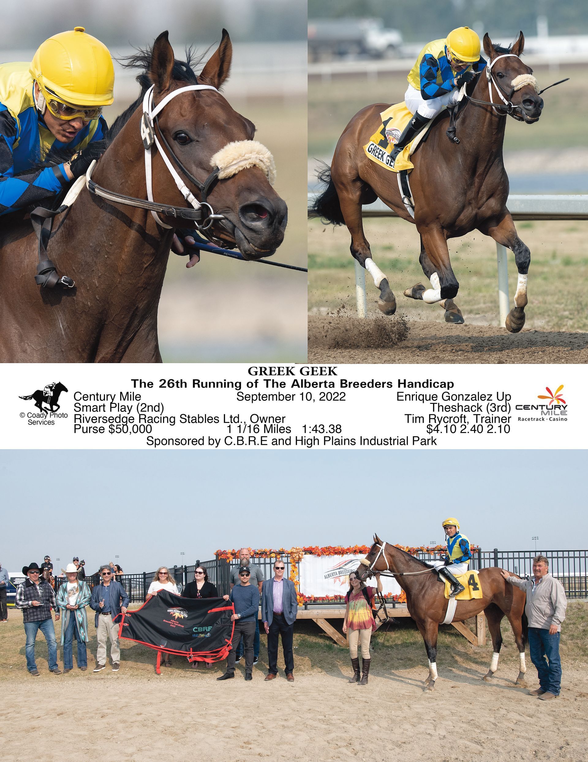 “Finally,” exhaled trainer Tim Rycroft after Greek Geek won the Alberta Breeders Handicap - one of seven $50,000 stakes races for Alberta-breds on Saturday’s Alberta Fall Classic card at Century Mile.